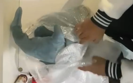 Is it a bird? Is it a plane? No, it’s a Luco in an IKEA box taped and wrapped like a shawarma. After months away, Luco finally came home, bringing tales of distant lands and a box full of imaginary snacks (and maybe a sock or two that didn’t belong to him + his sister).
